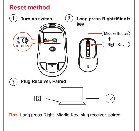 - Long press Right + Middle buttons together