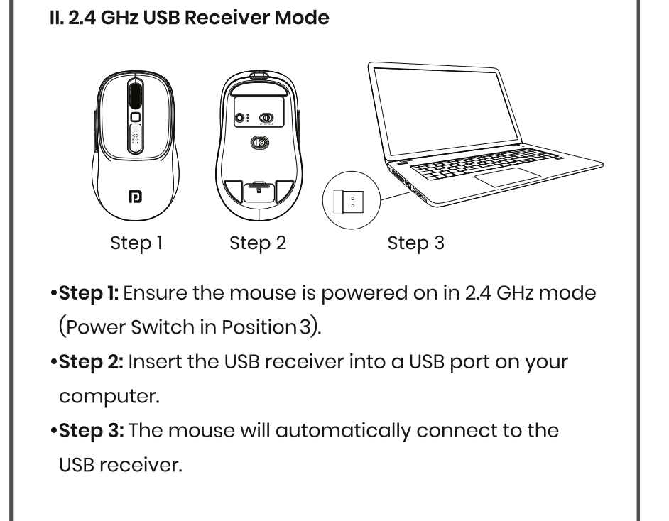 - Section C: How to Connect via 2.4 GHz USB Receiver