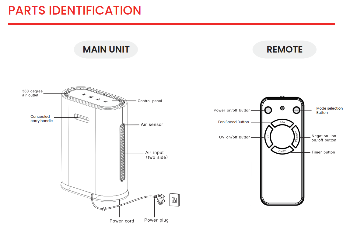 - Place the unit near pollution sources such as doors or windows for better efficiency